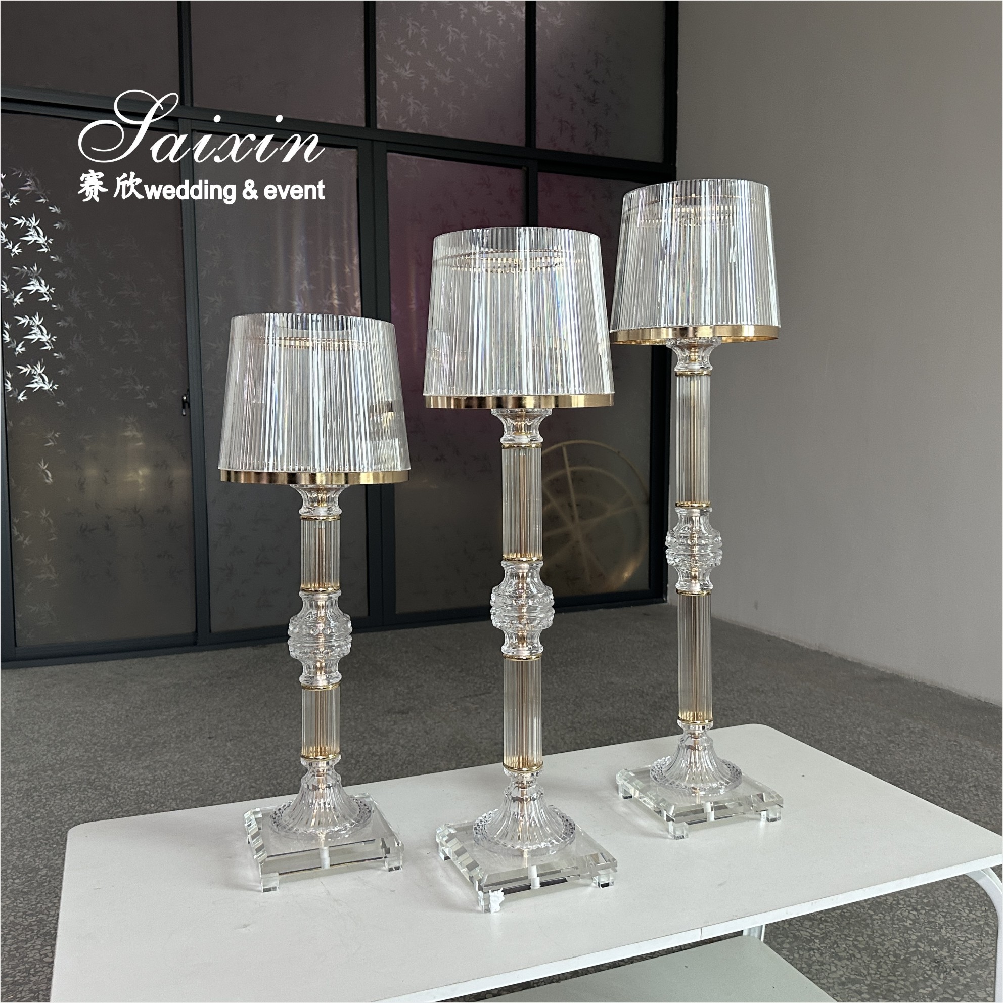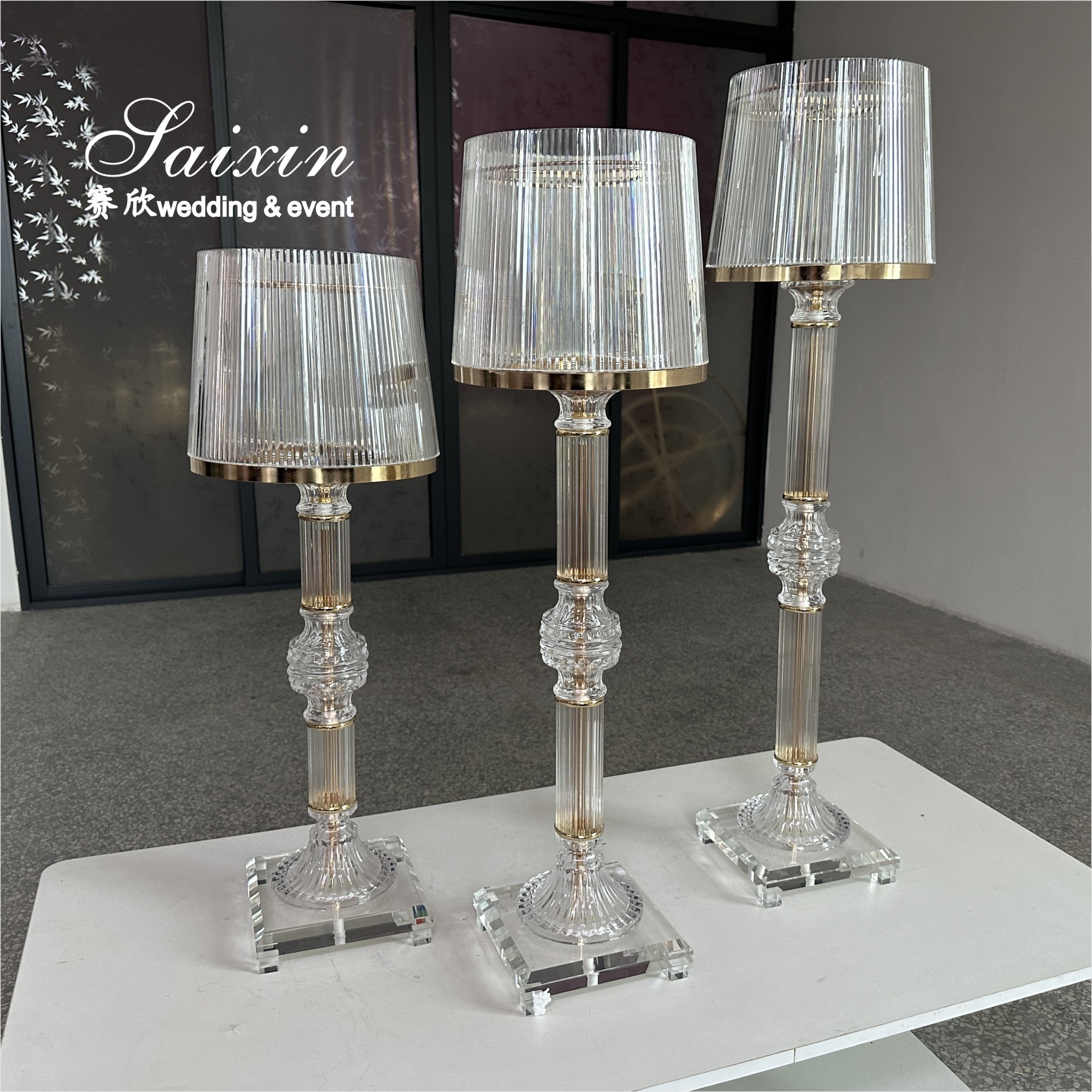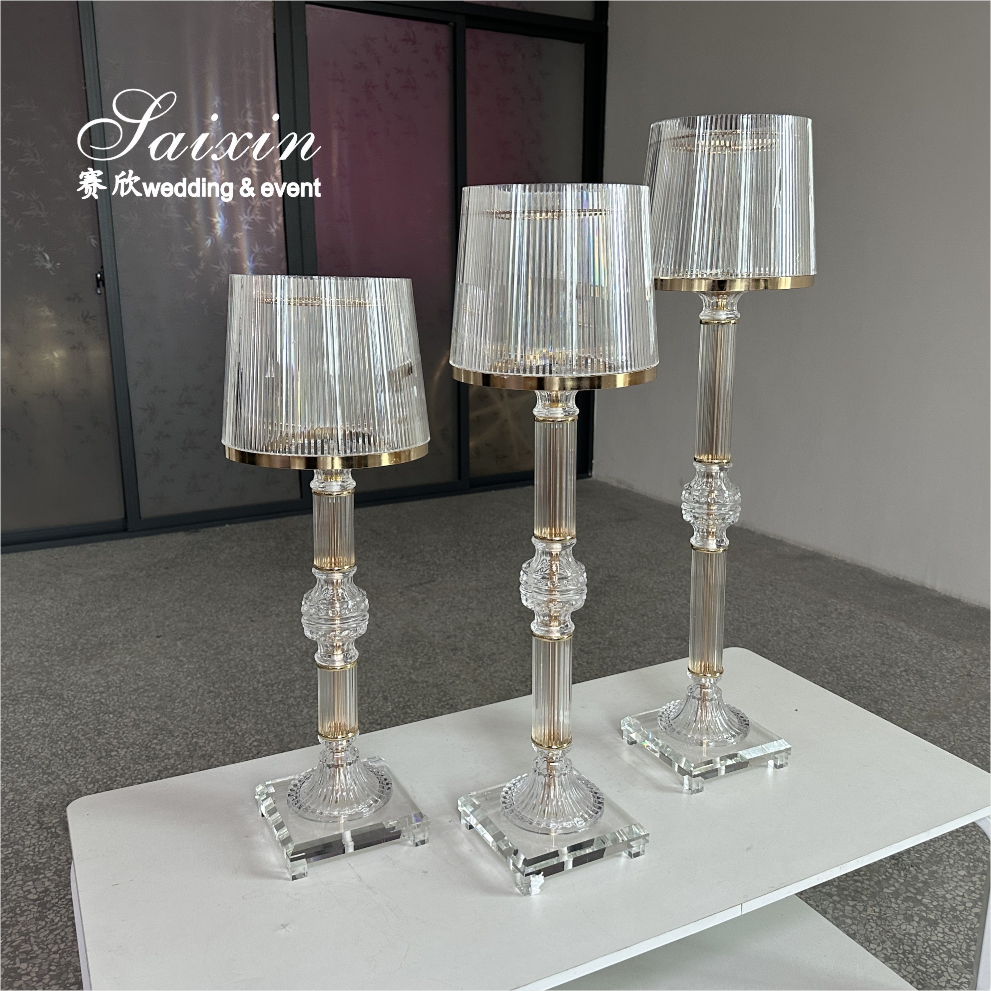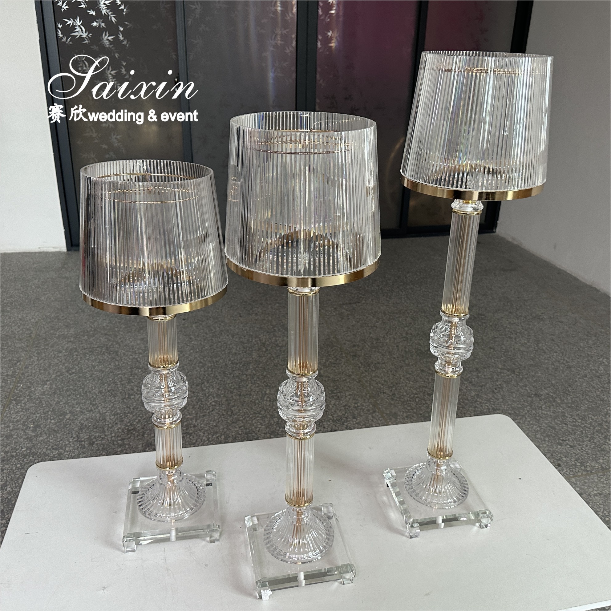 | Product Name | 3 Pcs Set Gold Clear Ring Shade Crystal Glass Candle Holder Stands for Wedding Centerpieces |